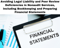 | Avoiding Legal Liability and Peer Review Deficiencies in Nonaudit Services, Including Bookkeeping and Preparing Financial Statements Handout (822.5 KB) | Available after Purchase | ||